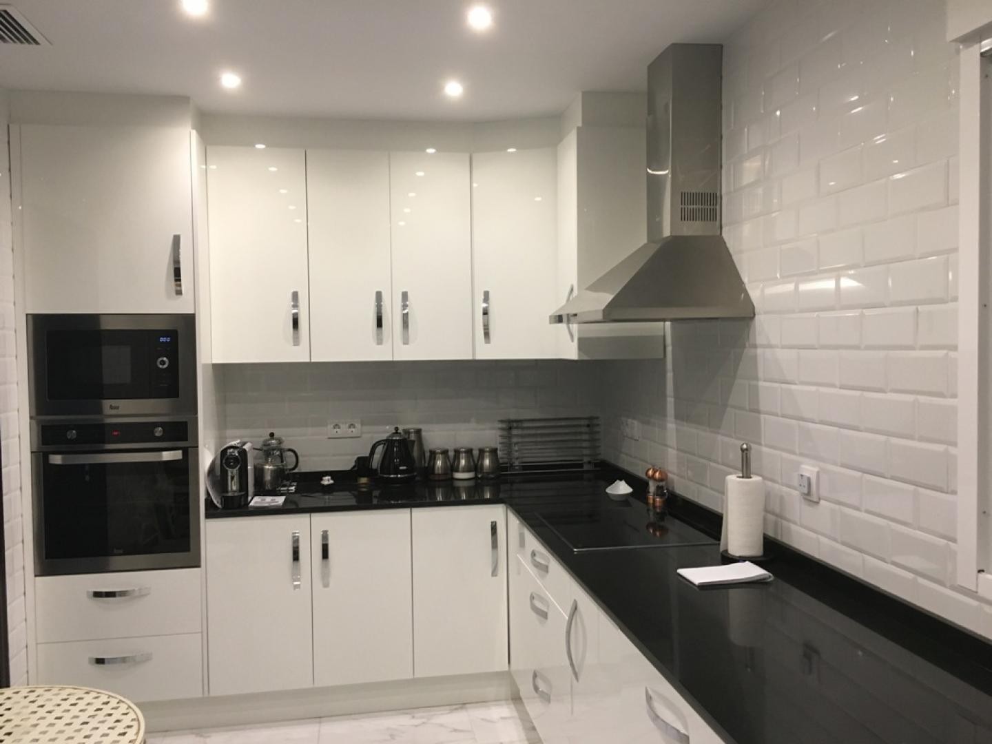 De keukens zijn voorzien van kasten met standaard deuren en handgrepen, conform de bijgeleverde tekeningen, een roestvrijstalen spoelbak en kraan, pre-installatie voor oven, vaatwasser, afzuigkap en diverse granieten werkbladen naar keuze, die in het budget zijn inbegrepen. (Andere stenen werkbladen zijn beschikbaar, maar tegen een meerprijs.) Witgoed niet inbegrepen.
