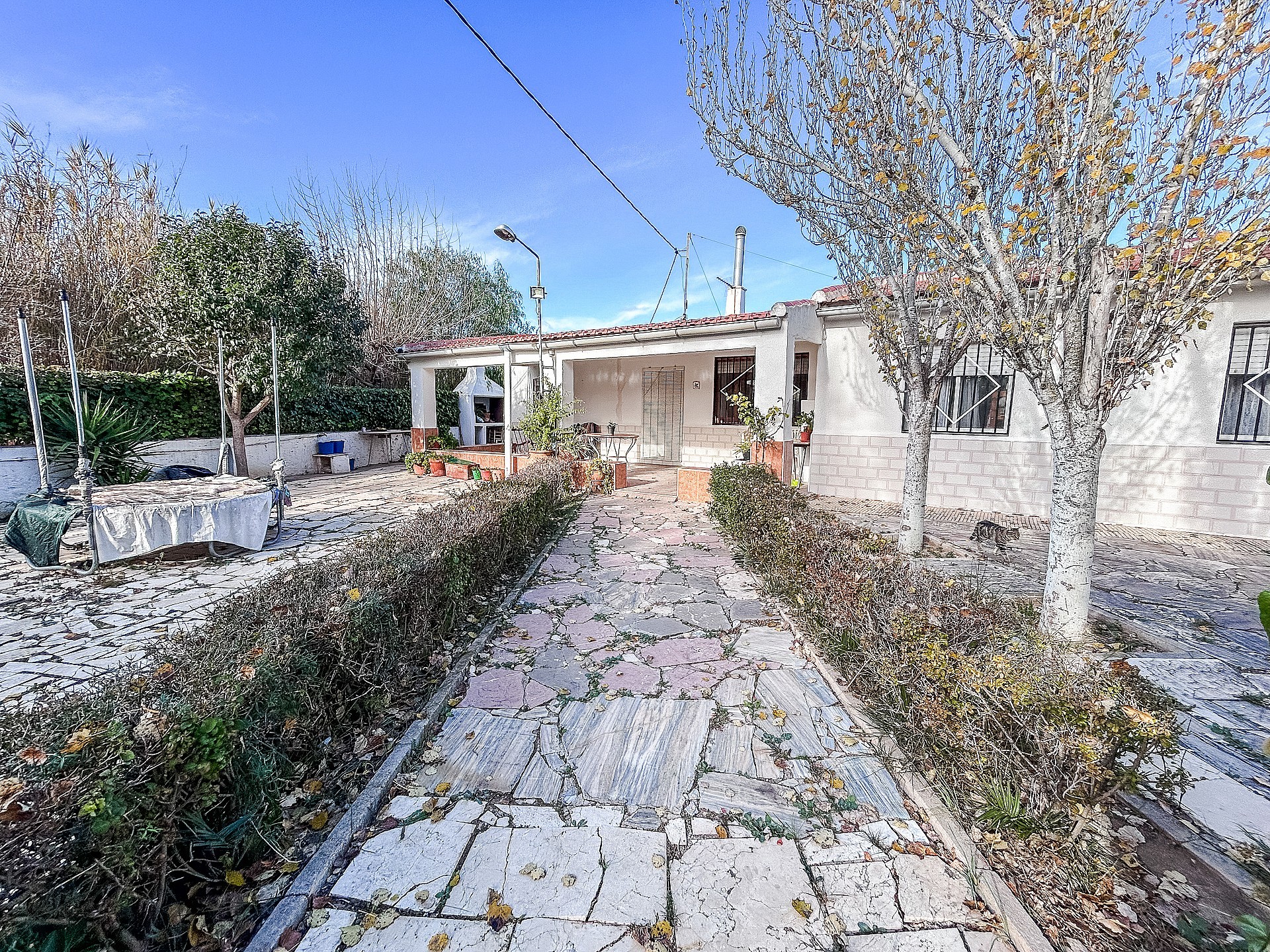 Te koop: een vrijstaande villa gebouwd in 2002, gelegen in een rustige omgeving tussen Sax en Elda. De woning biedt veel privacy, uitstekende bereikbaarheid en een bevoorrechte natuurlijke omgeving. Het perceel heeft een totale oppervlakte van 3.455 m², waarvan 855 m² behoren tot het hoofdgedeelte waar de woning en de voorzieningen zich bevinden. De overige 2.600 m² liggen direct tegenover het huis (niet aaneengesloten maar zeer dichtbij) en bevatten ongeveer 30 productieve olijfbomen.